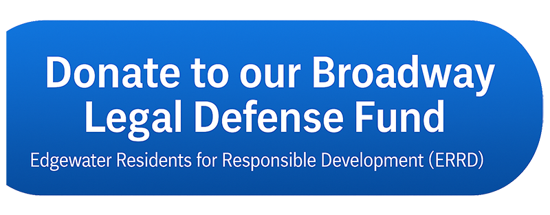 Edgewater Residents for Responsible Development is a 501c4 association of residents and small businesses who oppose the City’s proposal for radical upzoning of 2.6 miles of Broadway with no study, planning or input from affected residents and businesses.